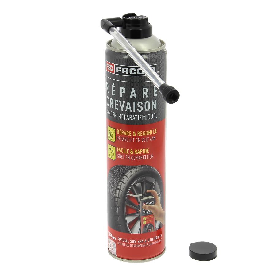Ripara in pochi minuti, senza smontare, un pneumatico forato. La composizione specifica del ripara-foratura FACOM assicura una distribuzione uniforme del prodotto nel pneumatico. In questo modo, il rischio di creare uno squilibrio (zavorra) è limitato. Inoltre, preserva un livello di elasticità necessario per il buon comportamento del pneumatico sulla strada. Utilizzabile in qualsiasi condizione meteorologica, consente una rapida riparazione e previene il rischio di rimanere esposti al pericolo sul bordo della strada. Per pneumatici con o senza camera d'aria di larghezza superiore a 175mm. Compatibile con pneumatici gonfiati ad azoto. Aerosol 600ml (netto).