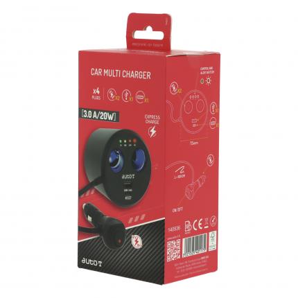 Questa stazione multriprese è specialmente adatta alle ubicazioni porta-bibite dei veicoli. Collegate il cordone alla presa accendisigari e caricate o alimentate fino a 4 apparecchi su 2 presi accendisigari e 2 porti USB. Led di controlli. Commutatore 12/24V integrato.