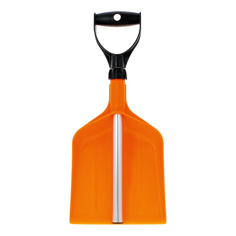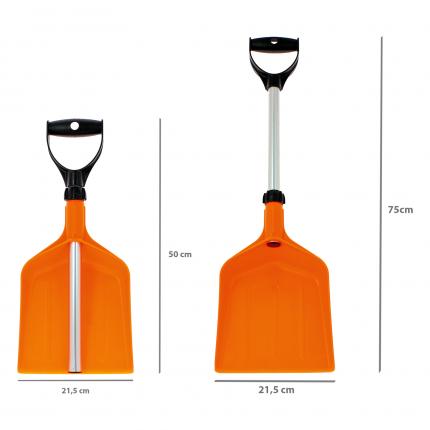 Pala in polipropilene di colore arancio con manico in alluminio, telescopico.