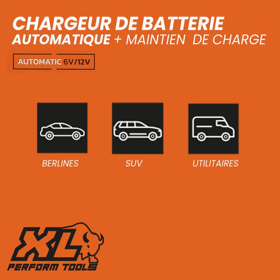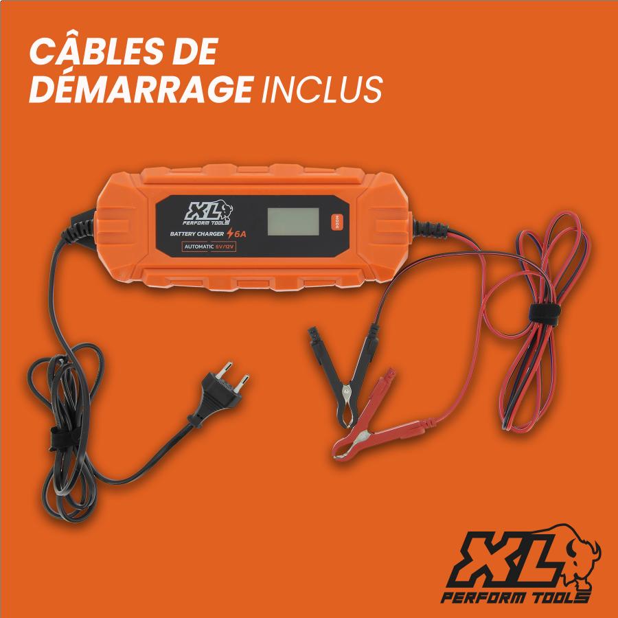 XLPT CARICATORE DI BATTERIE 6A Ideale per la ricarica di auto familiari e veicoli commerciali CARICATORE INTELLIGENTE Mantenimento della carica e gestione automatica della corrente di carica DISPLAY DIGITALE: Lettura semplice e precisa CORRENTE DI CARICA MAX: 6A POTENZA MAX: 100W TIPI DI BATTERIA COMPATIBILI: 6V / 12V - Piombo, Deep Cycle, AGM, GEL, Litio, LiFePO4 INDICE DI PROTEZIONE IP65 contro polvere e getti d'acqua. SICUREZZA: Protezione contro inversione di polarità, cortocircuito, batteria difettosa LUNGHEZZA: 3 metri MODALITÀ SUPPLY: Fornisce alimentazione durante il cambio della batteria per mantenere i dati del veicolo