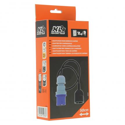 Permette di alimentare elettrodomestici, camper o roulotte dal terminal del campeggio. Presa 'Camping' maschio CE17, 16Amp,verso presa standard con messa a terra. Lunghezza totale 50 cm Impermeabile e resistente agli spruzzi d'acqua (IP44)