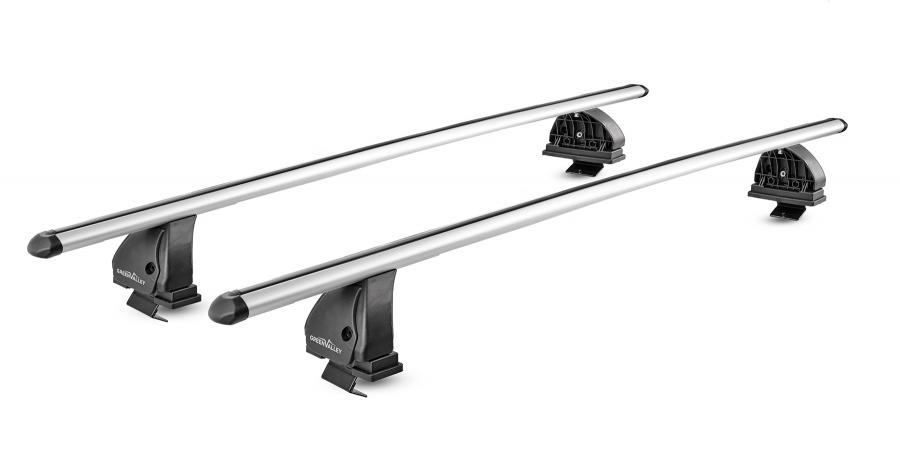 Barre portatutto Green Valley 2 Easy One Alu n°49 Barre portatutto complete in profilo di alluminio con piedini premontati, pronte all'uso. Profilo in alluminio con scala graduata per il posizionamento dei piedini. Il kit Easy One Alu è progettato specificamente per il montaggio su tetti normali (vedere l'elenco delle assegnazioni)