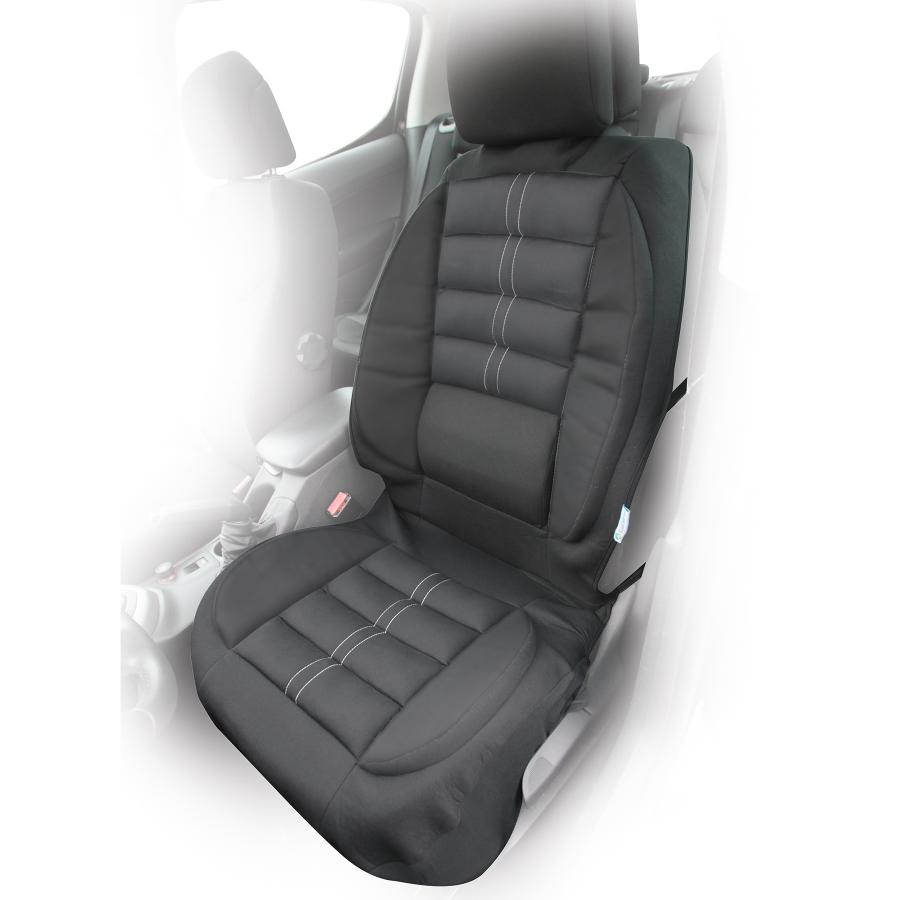 KINE TRAVEL coprisedile comfort La gamma Kiné Travel® propone delle risposte alle situazioni di disagio che si riscontrano in genere in viaggio e che colpiscono la schiena, la zona lombare e la nuca. I prodotti Kiné Travel sono stati sviluppati e testati in collaborazione con un fisioterapista specializzato nella schiena, al fine di offrire una gamma di prodotti perfettamente adattati e un comfort ottimale. La posizione seduta esercita una pressione maggiore sulla schiena rispetto a qualsiasi altra posizione, inclusa la posizione eretta. Per limitare questa pressione, la schiena deve mantenere l'incavo naturale della colonna situata a livello delle vertebre lombari. Il rivestimento del sedile con supporto lombare integrato permette questo: ripristina quest'incavo, e quindi limita le sollecitazioni sulle vertebre e riposa i muscoli della colonna vertebrale. I cuscinetti in schiuma di questo coprisedile forniscono anche supporto e comfort per tutto il corpo. Questo modello dal design universale si adatta a tutti i tipi di corporatura. Questo coprisedile vi offrirà il massimo comfort in macchina e vi consentirà di supportare meglio la posizione di seduta a lungo, grazie al supporto lombare integrato e ai cuscinetti di schiuma. Facile fissaggio al sedile. Airbag laterali compatibili. Lavabile a mano Dimensioni 116x54cm - Misura universale, adatta a tutti i tipi di veicoli. Schiuma comfort ad alta densità