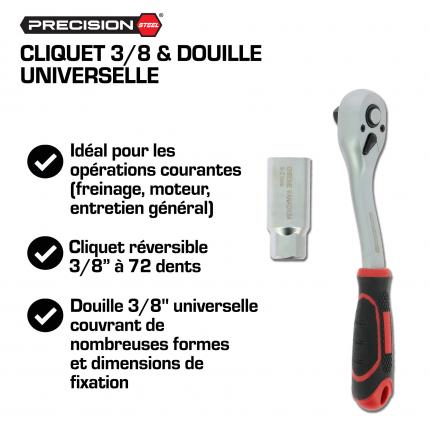 PRECISION-STEEL ricchetto 3/8 + presa universale
