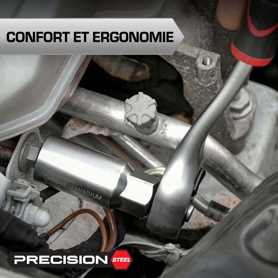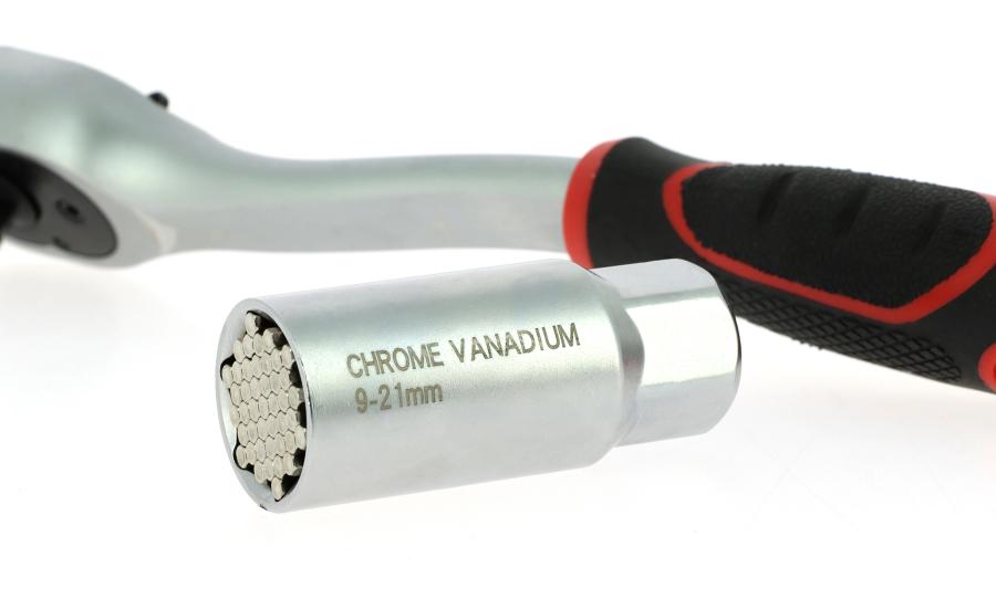 1 Cricchetto reversibile da 3/8' con 72 denti - Acciaio 40Cr 1 Bussola da 3/8', 9-21 mm. Resistenza fino a 200 Nm