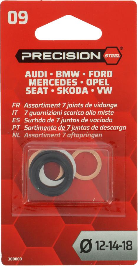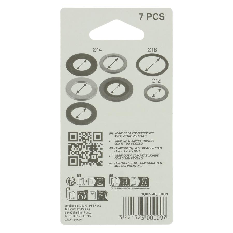 Assortimento da 7 guarnizioni per tappi cambio olio d12 a 18mm Speciale AUDI, BMW, FORD, MERCEDES, OPEL, SEAT, SKODA, VW