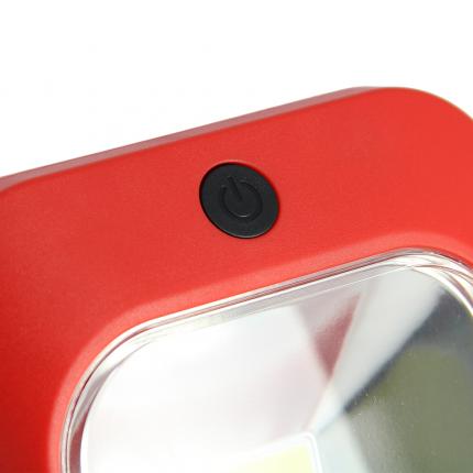 Proiettore di altissima potenza dotato di LED tipo COB. Procura un'ampia zona d'illuminazione per un lavoro più comfortevole. Regolaggio della luminosità su 2 livelli : 385 e 680 lumens. Resistente, ingombro e peso ridotti (550g). La manopola orientabile a 360° permette di appendere la lampada, di porla o di portarla via. Batteria integrata tipo Li-Ion di grande capacità. Ricarica su settore 230V o presa accendisigari 12V (accessori forniti).