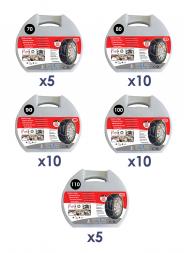 Coppia di catene da neve omologate con traverse asimmetriche per un'efficienza ottimale in trazione, in curva e in frenata. Maggiore visibilità : Extrem Grip® è equipaggiato con il sistema riflettente NVS -Night Vision Security- di Michelin, che aumenta la visibilità notturna laterale del veicolo. Catene a maglie quadrate da 9 mm brevettate. Sistema di tensione autobloccante automatica e continua durante la guida. Smontaggio automatico. Chiusura piatta e girevole. Marcatori di colore per facilità di montaggio. Fornito con 2 maglie di ricambio, un paio di guanti a maniche lunghe, istruzioni di montaggio plastificate a uso tappeto e un manuale utente. Confezionate in una custodia antiurto con 2 scomparti interni per contenere le 2 catene separate ed evitare l'intreccio.