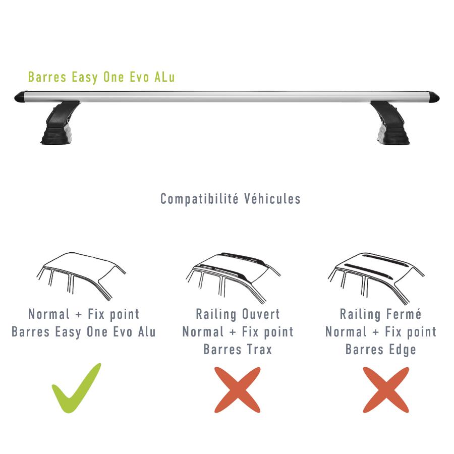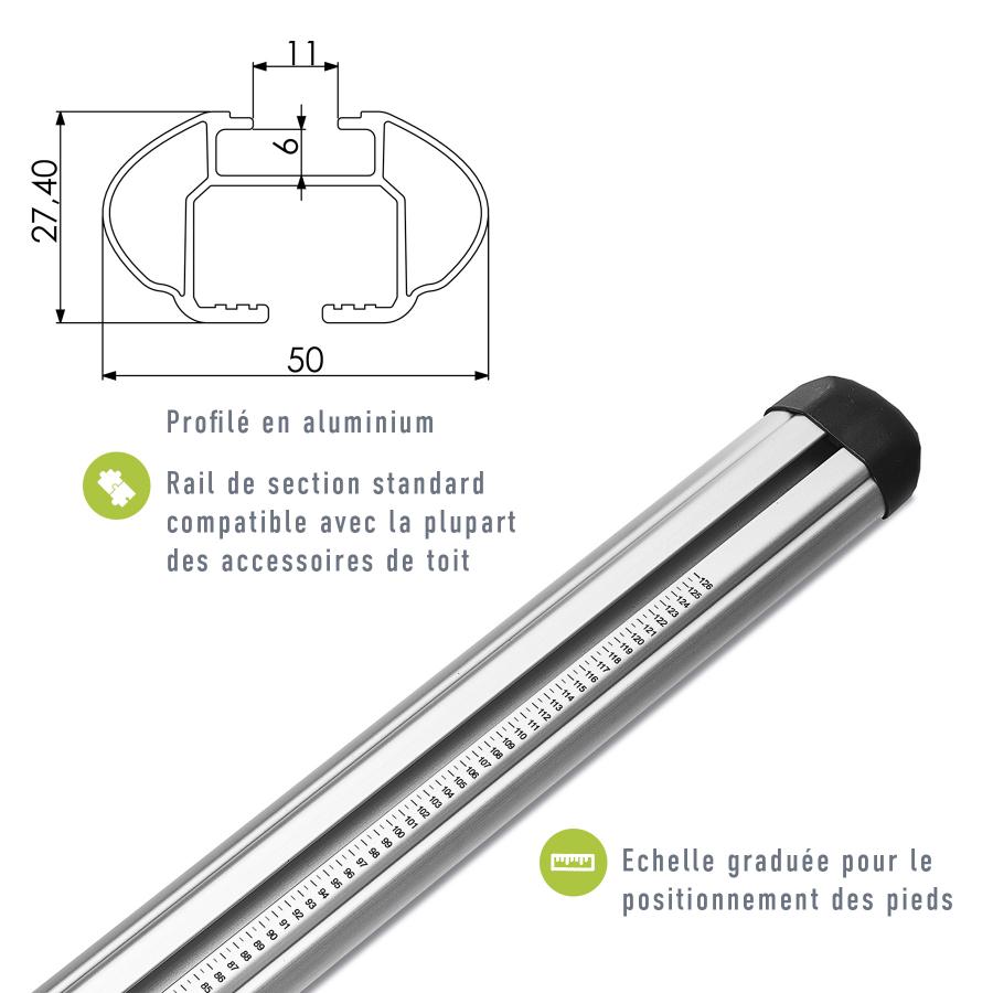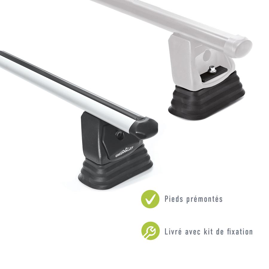 Barre portatutto Green Valley 2 Easy One Alu n°16 Barre portatutto complete in profilo di alluminio con piedini premontati, pronte all'uso. Profilo in alluminio con scala graduata per il posizionamento dei piedini. Il kit Easy One Alu è progettato specificamente per il montaggio sul tetto con Fix Point (vedere l'elenco delle assegnazioni).