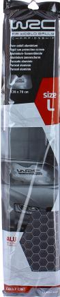 Parasole allumino isoterme WRC Rally line misura L Protegge efficacemente l'interno del veicolo contro i raggi del sole durante la sosta. Ripiegabile e richiudibile con bottone pressione , è facile da riporre nell'auto. Disponibili in 2 misure : L/XL. Dimensioni del parasole spiegato : 70cm x 130 cm
