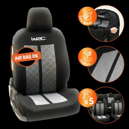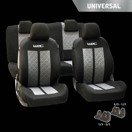 Set completo di fodere per auto WRC. Da uno stile WRC al tuo abitacolo ! Dimensione universale. Installazione facile e veloce. Compatibile con airbag. Sistema di fissaggio 1/3 -2/3.
