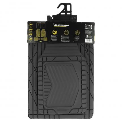 I tappeti di rivestimento personalizzati da MICHELIN ® sono realizzati in PVC spessa e resistente, progettata per resistere bene a un uso costante. I tappeti universali con linee di taglio offrono una vestibilità più personalizzata, progettata per la maggior parte di auto, SUV e furgoni. Il design con nervature rialzate cattura detriti e fuoriuscite per proteggere l'interno del veicolo. I bordi sagomati permettono di adattare la vestibilità del tappeto per una copertura e protezione massime. Costruzione per tutte le stagioni per una protezione massima. Il supporto antiscivolo durevole fissa saldamente il tappeto per una protezione affidabile ogni giorno. Progettato per adattarsi alla maggior parte delle auto, design universale. Facile da pulire - basta lavarlo con acqua quando necessario. Colore: Nero Contenuto: Tappeti universali 4 pezzi (2 per il davanti e 2 per il retro) Materiale: PVC Installazione: Posizionare il tappeto nel bagagliaio o nell'area di carico. Segnare l'area da tagliare per un adattamento personalizzato. Tagliare con attenzione il tappeto utilizzando delle forbici e riposizionarlo.