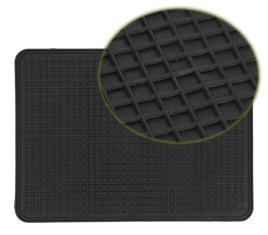 Tappeto nero PVC di protezione per l'interno o l'esterno. Utilizzabile anche per l'automobile o il garage. Protezione dei rivestimenti d'origine. Rivestimento antiscivolo Pulizia facile con acqua insaponata. Peso : 760g. Dimensioni : 35 x 50 cm.