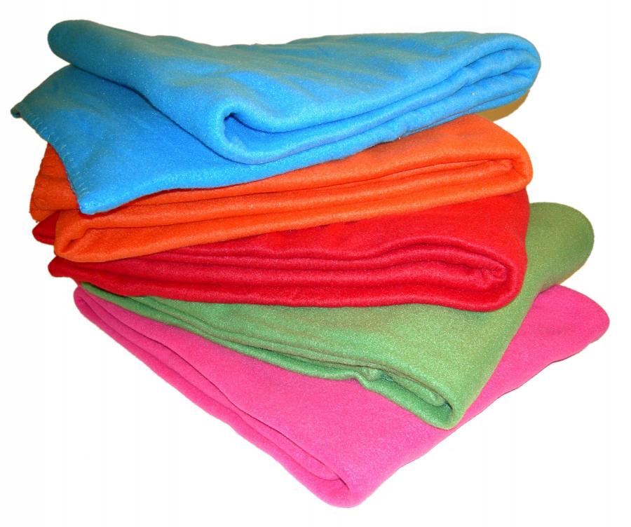 Plaid polare di buona qualità 250 g / m², colori assortiti. 100% poliestere Dimensioni: 120 x 150 cm Nell'imballo da 30 pezzi : 6 blu intenso / 6 anice verde / 6 arancione / 6 fishia / 6 rosso.
