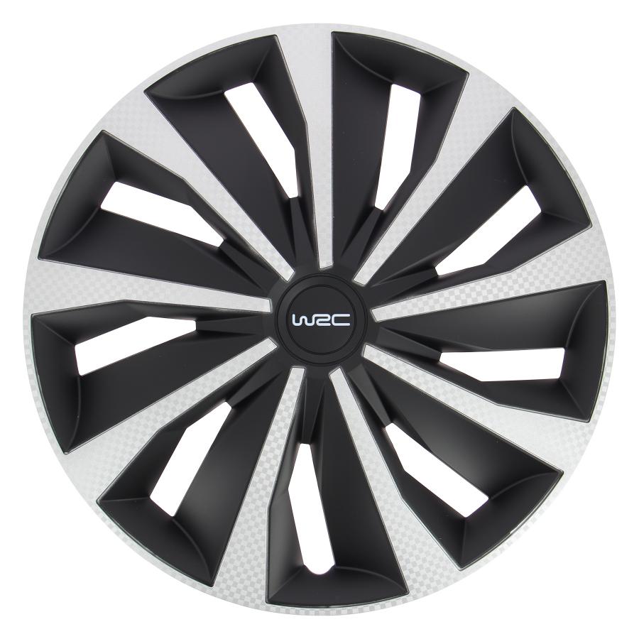 Set da 4 copricerchi WRC bicolori 15 pollici Carbon Style. Copricerchi WRC con look sportivo e trendy, dal design elegante. Colore nero opaco e grigio silver, con finitura stile carbonio. In ABS grigio metalizzato. Laccatura alta finitura vernicciata. Copricerchio per qualsiasi tipo di ruota 15 pollici. Fissaggio con semplice clip sul cerchio.