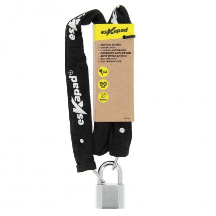 Cavo antifurto catena Chiusura con chiave Diametro 4 mm , lunghezza 90 cm con lucchetto Eskapad, la gamma di accessori, d attrezzature e materiali di consumo bici per soddisfare il più possibile le aspettative dei consumatori Packaging responsabile, con uso ridotto di plastica.